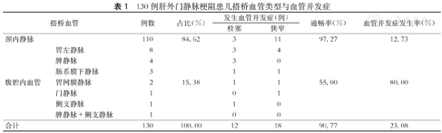 130例肝外门静脉梗阻患儿搭桥血管类型与血管并发症