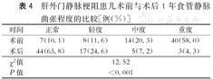 肝外门静脉梗阻患儿术前与术后1年食管静脉曲张程度的比较[例(%)]