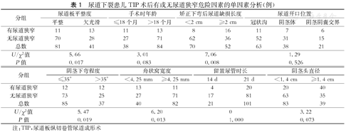 尿道下裂患儿TIP术后尿道狭窄危险因素的多因素分析