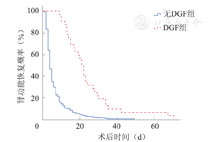 ±s)表示,并根据数据的结构特征利用Student t检验或Mann-Whitney U检验比较两组间变量的差异。单因素Logistic回归分析得到未经校正的各LifePort参数对DGF的比数比(OR值)。对单因素分析有意义的变量进行多因素Logistic回归分析,筛选发生DGF的独立危险因素。利用COX比例风险模型分析LifePort参数与移植肾功能恢复正常时间之间的相关性。通过绘制ROC曲线及计算曲线下面积评价危险因素预测DGF的价值。两组移植肾功能恢复正常时间利用Kaplan-Meier生存曲线显示,并做log-rank检验。双侧P<0.05为差异有统计学意义。