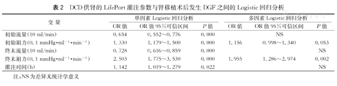 DCD供肾的LifePort灌注参数与肾移植术后发生DGF之间的Logistic回归分析