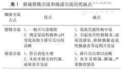 胰液膀胱引流和肠道引流方式的优缺点见表1。目前最常用的术式是胰液肠道引流,约占80%以上,膀胱引流不足20%。在SPK,2种引流方式的移植胰腺和移植肾1年存活率的差异无统计学意义,而PAK和PTA,膀胱引流术式的移植胰腺1年存活率略高于肠道引流术式[6,8,11,15,20]。