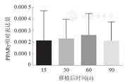 移植后15、30、60、90 d以及当受者发生aGVHD时,采集受者外周血各4 ml,分离外周血单个核细胞,加TRIzol冻存,以同期10例正常志愿者外周血样本作为正常对照。取处理后的外周血样本,提取细胞总RNA,采用RNA逆转录试剂盒(Promega公司)进行逆转录-聚合酶链反应(RT-PCR)合成cDNA。采用美国应用生物系统公司(Applied Biosystems)的SYBR Green PCR试剂盒,以肌动蛋白β(β-actin)为内参进行实时荧光定量PCR,对PPARγ、γ干扰素(IFN-γ)及T-bet mRNA表达水平进行定量检测。基因表达量由相对内参表达倍数表示,计算方法为2-ΔCT,ΔCT=待测基因CT值-内参CT值。