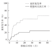采用SPSS(22.0版)软件和R软件进行统计学分析。总存活率、无病存活率的分析应用Kaplan-Meier生存分析,组间比较应用log-rank检验。RR、移植相关死亡(TRM)率采用竞争风险计算累积发生率。危险因素分析应用COX回归,单因素分析P值<0.10的危险因素纳入多因素分析。分类变量的组间比较应用卡方检验。P<0.05差异有统计学意义。