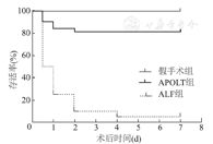 应用SPSS 13.0统计软件分析,计量数据以均数±标准差表示,组间均属比较采用χ2检验,P<0.05表示差异有统计学意义。存活率的比较采用Log-rank检验方法。