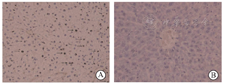 血清丙氨酸转氨酶(ALT)、总胆红素和血氨浓度测定(DAKO公司试剂盒)。血液采集通过小鼠内眦静脉取血,滴入2 ml的EDTA-K2的试管中,常温下离心(1200×g)5 min,小心取上清液检测。