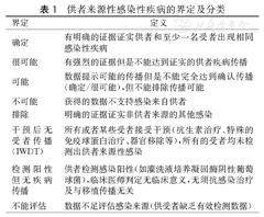 | 确定 | 有明确的证据证实供者和至少一名受者出现相同感染性疾病 |