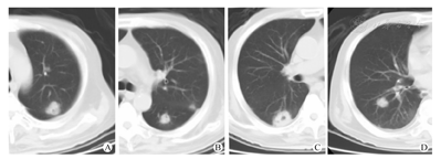所有图像经2位经验丰富的放射科医师独立阅片,意见不一致时协商确定,将异常发现描述为实变、肿块、大结节(≥1cm)、小结节、树芽征、空洞等形式。病变的数量、大小、含气支气管征、晕征、反晕征或病变内低密度征、空气半月征等特点以及胸腔积液等伴随征象进行评价和记录。受者复查CT时将这些改变进行对比,记录为进展、好转或无变化,新出现的病变情况也进行记录。