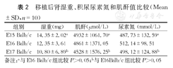 移植后肾湿重、积尿尿素氮和肌酐值比较(Mean±SD,n=10)
