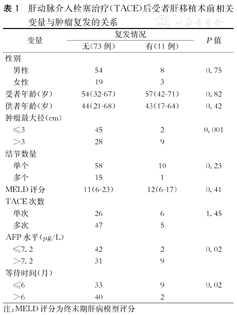 肝动脉介入栓塞治疗(TACE)后受者肝移植术前相关变量与肿瘤复发的关系