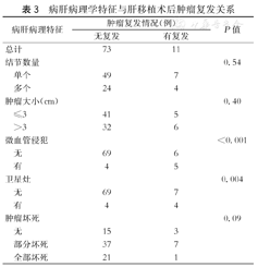 | 病肝病理特征 | 肿瘤复发情况(例) | P值 | ||