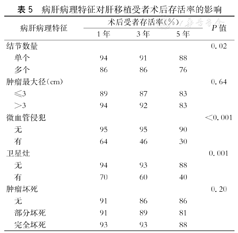 | 病肝病理特征 | 术后受者存活率(%) | P值 | |||