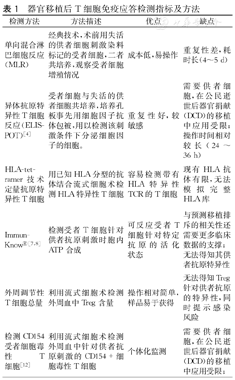 | 单向混合淋巴细胞反应(MLR) | 经典技术,术前用失活的供者细胞刺激染料标记的受者细胞,二者共培养,观察受者细胞增殖情况 | 成本低,易操作 | 重复性差,耗时长(4~5 d) |