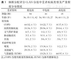 肺源分配评分(LAS)分组中受者疾病类型及严重程度分布情况