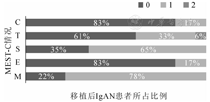 病理牛津分型在移植后IgAN的诊断中有一定临床价值:(1)小管萎缩/间质纤维化与移植肾功能下降相关;(2)节段硬化、球囊粘连与移植后蛋白尿的严重程度相关。