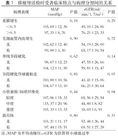 | 病理表现 | MAP(mmHg) | P值 | eGFR(ml/min/1.73m2) | P值 | |