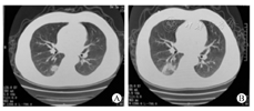 例1 女性,39岁,肾移植术后22个月。长期居住于武汉市东西湖区,2019年1月16日因发热2 d就诊,最高体温37.4 ℃,无咳嗽咳痰,尿量约2 L/d。既往史:2018年3月因"尿毒症"行肾移植术,目前口服泼尼松+吗替麦考酚酯+他克莫司三联抗排斥治疗,在本院门诊定期复诊,血肌酐约170 μmol/L;高血压10年,最高血压250/120 mmHg,目前口服厄贝沙坦150 mg/d、苯磺酸氨氯地平10 mg/d(一日2次)、倍他洛克缓释片23.75 mg/d,自述血压控制可。查体:体温37 ℃,脉搏90次/min,呼吸20次/min,血压112/69 mmHg,余无特殊。我院门诊血常规检查提示白细胞正常范围,淋巴细胞减低,他克莫司血药浓度8.3 μg/L,血肌酐182 μmol/L,胸部CT提示肺部感染(图1)。