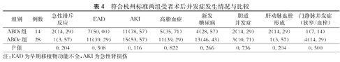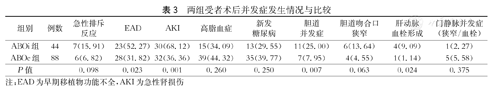 不符合杭州标准两组受者术后并发症发生情况与比较