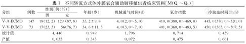 | V-A-ECMO | 147 | 18(12.2) | 129 (87.8) | 33.2±9.8 | 4.0(2.0~5.0) | 410.0(380.0~469.0) | 445.0(370.0~520.0) |