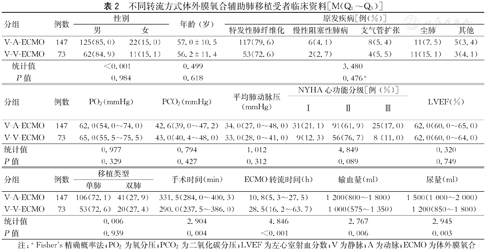 不同转流方式体外膜氧合辅助肺移植受者临床资料[M(Q1~Q3)]
