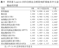 单因素Logistic回归分析法分析影响肝移植术中大量输血的因素