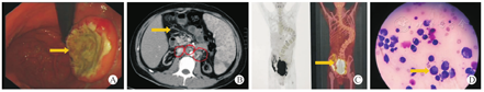 肾移植术后PTLD的临床诊断是结合临床表现、实验室检查、体征、影像学检查等,组织病理学检查是确诊的金标准。确诊PTLD的依据包括:(1)受者出现如发热、盗汗、体重下降、淋巴结肿大、原因不明肿块等症状和体征,累及移植肾可出现移植肾功能不全。(2)实验室检查血液中不断增加的EB病毒载量,病毒衣壳抗原(VCA) IgA抗体、EB病毒VCA-IgM抗体阳性。或者活检标本检测到编码RNA原位杂交EBER1染色阳性。(3)B型超声、CT、正电子发射计算机断层显像(PET-CT)检查发现中枢神经系统、实体器官、胃肠道及腹腔等部位的肿块。(4)经内镜、淋巴结活组织病理学检查提示有明显的PTLD表现(图1)。