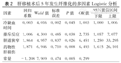 | 冷缺血时间 | 0.003 | 4.016 | 0.002 | 0.045 | 1.003 | 1.000 | 1.006 |