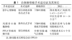 综上所述,自体肺移植保留了部分健康肺组织,最大限度地挽救了患者的肺功能,采用合理的术式将提高患者的术后生活质量,降低围手术期的死亡风险。但由于其术式复杂,难度大。且仅适用于癌组织浸润少量肺叶,使得肺叶切除术后剩余肺叶仍能维持正常肺功能的患者。虽然住院死亡率远低于全肺切除术,但长期看来,术后的并发症较多:PPLS造成的食管、纵隔的移位;支气管吻合口瘘及管腔狭窄等严重的并发症[24,25]。且现目前仍无法很好的规避自体肺移植的术后风险。更重要的是,自体肺移植术后的长期存活率与全肺切除术相差不大,这也导致许多医师偏好全肺切除术。近年来,自体肺移植的相关报道也多为个案或小样本的数据,无法进一步研究分析。如何有效预防和处理术后各并发症也是提高患者的远期预后的关键,我们需要更多大中心、多样本和更长时间随访的数据,进一步探究和评价自体肺移植的应用。随着基础和临床研究的不断深入自体肺移植在肺部疾病中的应用会更加广泛。