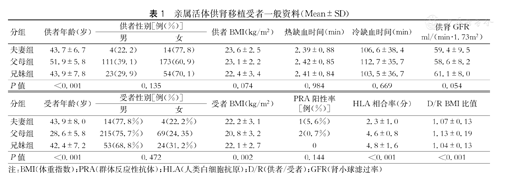 亲属活体供肾移植受者一般资料(Mean±SD)