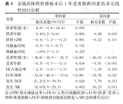 亲属活体供肾移植术后1年受者肌酐因素的多元线性回归分析