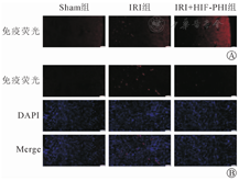 与IRI组相比,IRI+HIF-PHI组小鼠sCr水平明显降低(P<0.01),肾组织损伤情况明显改善,肾小管损伤半定量评分更低(P<0.01),凋亡细胞减少(P<0.01),TNF-α和IL-1β的表达水平降低(P<0.05);相较于Sham组,IRI组HIF-1α的mRNA表达增加不明显(P>0.05),免疫荧光显示IRI组肾脏组织HIF-1α在髓质区表达增加,皮质增加不明显,而HIF-PHI预处理后,HIF-1α的mRNA表达明显增加(P<0.05),肾皮质HIF-1α的表达明显增加,但其髓质区HIF-1α表达弱于IRI组。