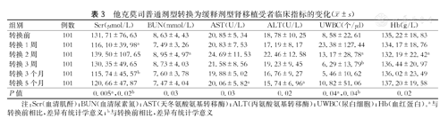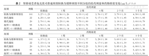 他克莫司普通剂型转换为缓释剂型肾移植受者临床指标的变化(