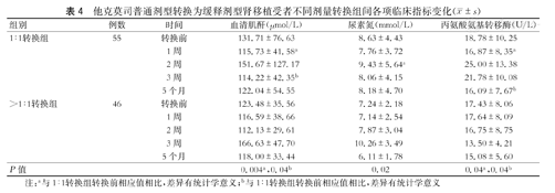 | >1∶1转换组 | 46 | 转换前 | 123.48±35.56 | 7.24±2.18 | 17.43±8.06 |
