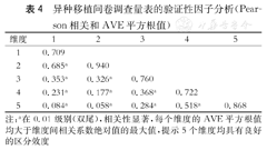 异种移植问卷调查量表的验证性因子分析(Pearson相关和AVE平方根值)