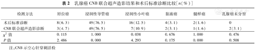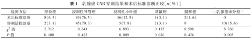 乳腺癌CNB穿刺结果和术后标准诊断比较[n(%)]