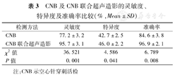 | CNB联合超声造影 | 95.7±3.1 | 46.0±2.2 | 96.9±2.1 |