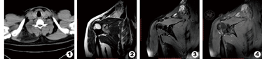 手术诊疗:全身麻醉成功后,患者取左侧卧位,沿肩背部包块表面做横行梭状切口,长约15 cm。电刀切口皮肤、皮下,逐步暴露右侧岗上肌、岗下肌及右侧斜方肌,沿岗上肌向其周边间隙扩展,行肌间隙钝性、锐性分离。向后切除至大小圆肌肌膜,向下切除至岗下肌肌膜,向外切除部分斜方肌,向内侧切除至脊柱棘突,向前切除至锁骨下间隙。