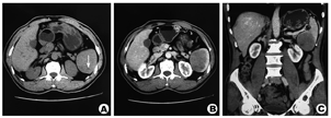 PSA预后较差,Neuhauser等[8]报道了28例经手术治疗的PSA患者的临床结局:25例患者在29月内死亡(中位生存期5个月),1例失访,2例存活,生存时间分别为8年和10年。在其他研究中报道的总体生存时间为4~14个月,脾破裂后80%的患者生存期<6个月[9],在脾破裂前进行手术,中位生存期能够达到11个月[10]。