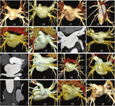 1A:标准型 1B:共干型-左共干(长干) 1C:共干型-左共干(短干) 1D:左短共干VR矢状面 1E:共干型-右共干 1F:共干型-双共干 1G:共干型-双共干MIP斜冠状面 1H:共干型-下共干 1I:下共干MPR横断面 1J:副静脉型-左副静脉 1K:副静脉型-右副静脉(右中叶静脉单独汇入左心房) 1L: a副静脉型-右副静脉(右最上静脉) 1M:右侧最上静脉MPR矢状面 1N:副静脉型-双副静脉 1O:混合型-右侧3条静脉 1P:混合型-右侧4条静脉