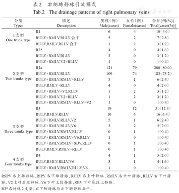 4支型(R4)5例(2%),有2种引流模式:中叶静脉与下叶上段静脉(V6)分别汇入左心房(图1P);部分中叶静脉、下叶上段静脉(V6)分别汇入左心房(图2R)。