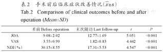 Comparison of clinical outcomes before and after operation (Mean±SD)