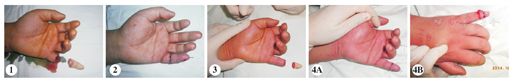自残性离断临床经常遇到,多因患者一时激动导致。显微外科技术应用于断指再植以来,对手指不同平面离断是否适应再植的认识随着时代的变迁,技术的进步和方法的改进而有不断变化和提高[1,2,3]。此例再植后的指体远端再次离断,罕有文献报道[4]。为此,我们总结了一些经验及教训:①自残性离断再植术后不仅需要细致的身体护理,更需要无微不至的精神安慰,防止再次自残的发生;②自残患者多具有倾向性,易怒,情绪控制不良,在再植时血管吻合需细致,尽量多吻合血管,防止术后血管危象的发生;③根据术中所见,骨骼密度降低,髓腔缩小,用稍细克氏针固定。近端原肌腱断裂处粘连,抽出困难,需适当剥离后方可抽出。再植后的指体动脉管径缩小,静脉管径反而增粗。张力亦无变化,动脉射血良好,再次再植难度无明显增加,但管壁将会变薄,易撕裂,手术操作需更加轻柔。