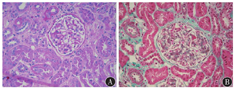 注:A: PAS染色(×400);B:Masson染色(×400)