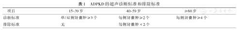 ADPKD的超声诊断标准和排除标准