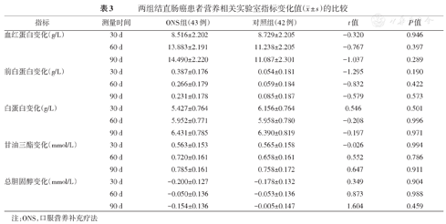 评价口服营养补充疗法(ONS)对结直肠癌术后辅助化疗患者营养状态及生活质量的影响。