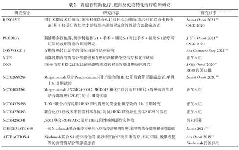 多项引人瞩目的胃癌新辅助化疗、靶向及免疫转化治疗临床研究正在积极开展中,见表2。