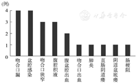 | Ⅱ级 | 6(6.4) | 胃肠穿孔 | 2(2.1) | ||