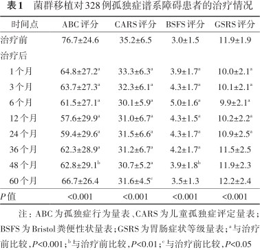 菌群移植对328例孤独症谱系障碍患者的治疗情况