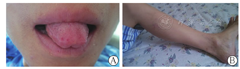 贫血貌,头部、唇部、舌苔及指尖可见多发血管痣,双下肢可见多发毛细血管扩张(图1)。