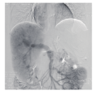 下腔静脉造影及肝静脉造影术:可疑肝内小静脉阻塞,门静脉右支局限性瘤样扩张(图3)。